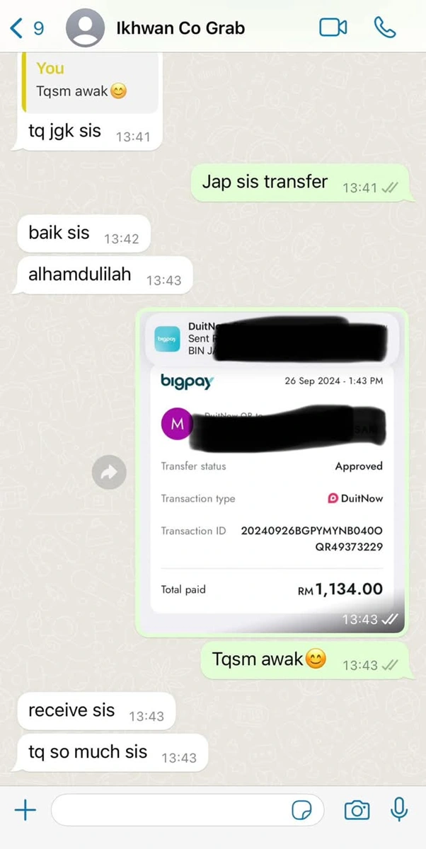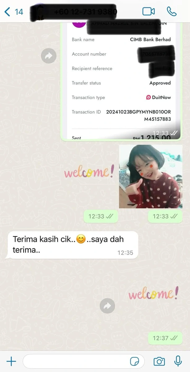 Feedback daripada pelanggan seperti di bawah adalah bukti nyata dedikasi kami dalam memberikan perkhidmatan terbaik. Setiap kisah menjadi inspirasi untuk kami terus berkembang dan memberikan layanan yang lebih baik.